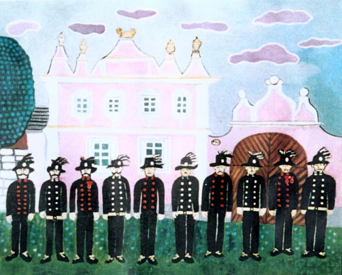 Muzikanti před hospodou, olej, 27x35, olej